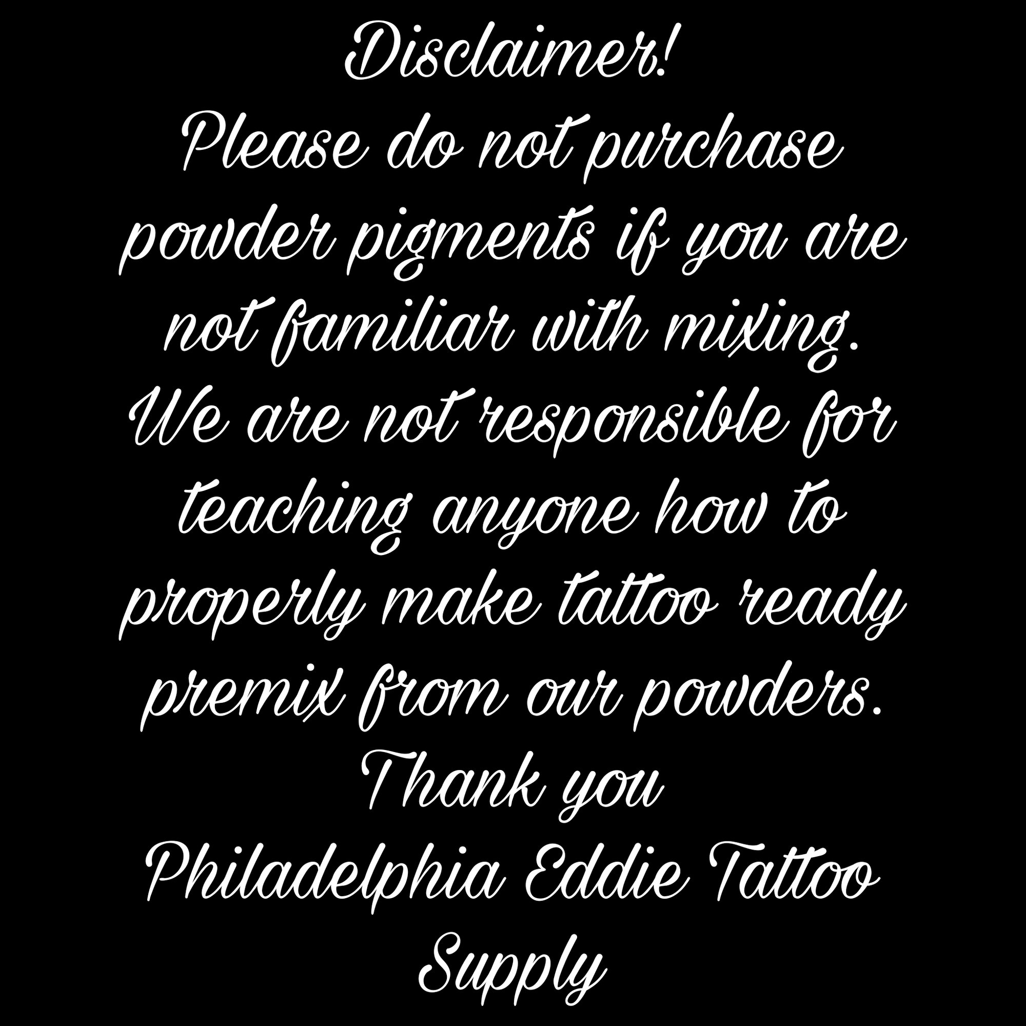 Disclaimer! Please do not purchase powder pigments if you are not familiar with mixing. We are not responsible for teaching anyone how to properly make tattoo ready premix from our powders.